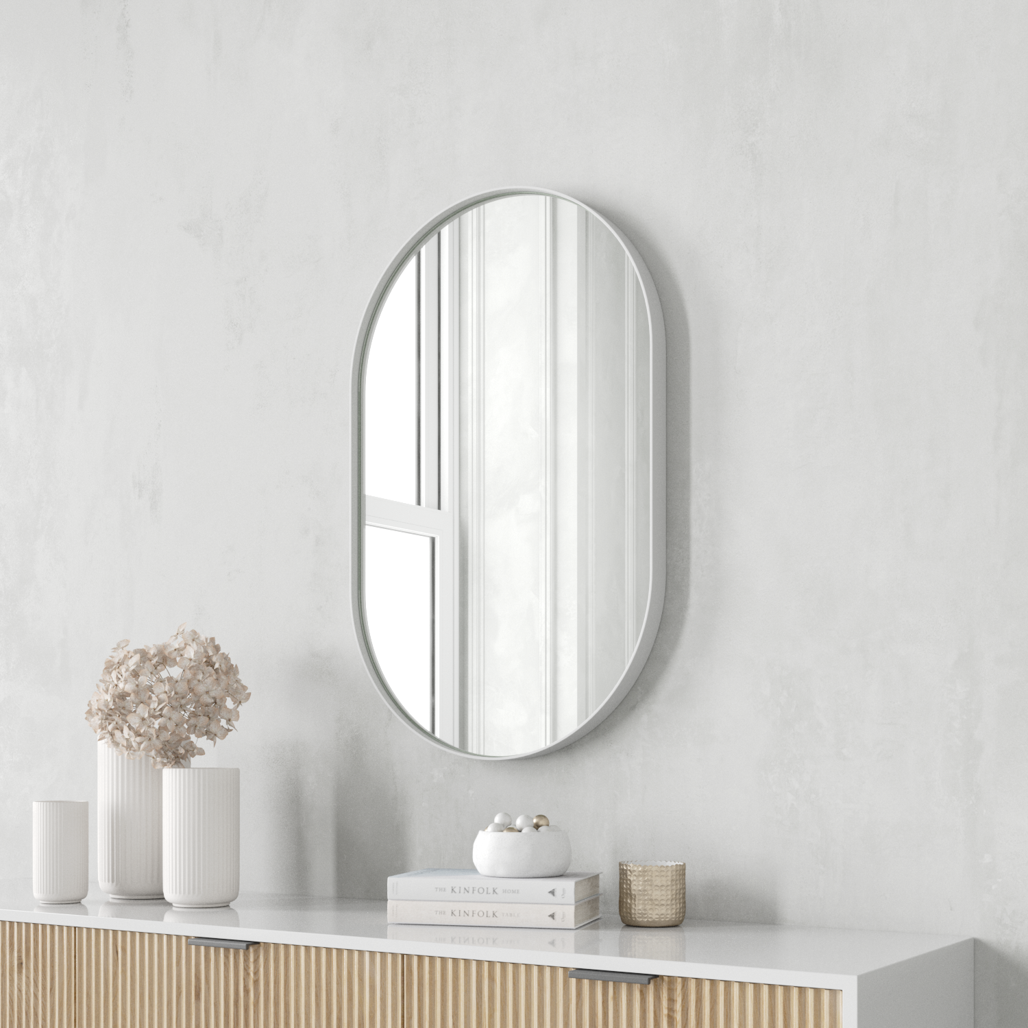Овальное зеркало в белой металлической раме «Прометей» S 81 см